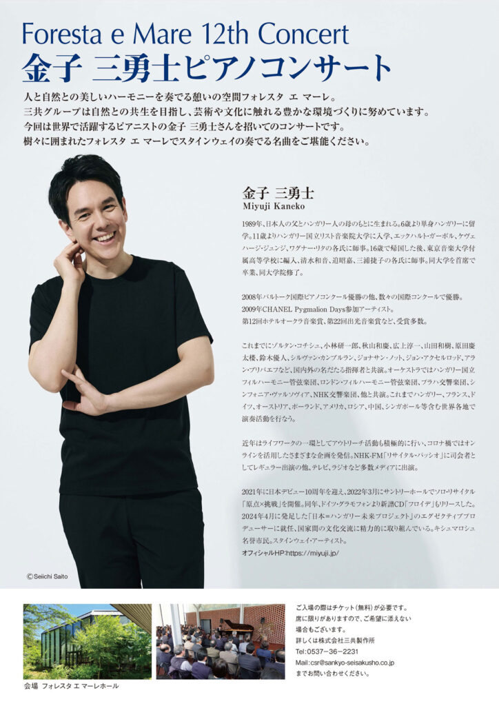 2025年11月15日(土)、第12回目となる今回は、世界的ピアニスト 金子三勇士(かねこ みゆじ)さん を迎えます。